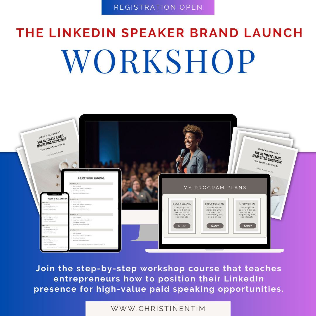 Join the step-by-step workshop course that teaches entrepreneurs how to position their LinkedIn presence for high-value paid speaking opportunities!